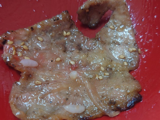 最後の最後に1枚とっておいた「SPF豚」をついばみ・・・